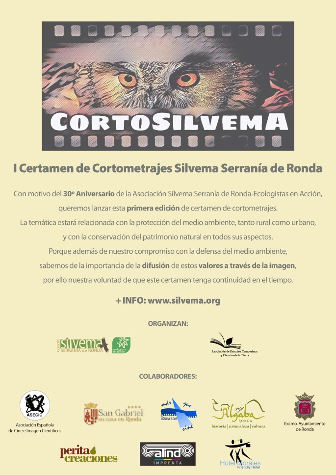 Con motivo del trigésimo aniversario de la Asociación Silvema Serranía de Ronda-Ecologistas en Acción, queremos lanzar esta primera edición de certamen de cortometrajes que esperamos tenga continuidad en el tiempo. El certamen tiene como principal objetivo estimular la creación de obras cinematográficas de calidad cuyas temáticas estén relacionadas con la protección del medio ambiente, tanto rural como urbano, y con la conservación del patrimonio natural en todos sus aspectos. Pueden concurrir aficionados y profesionales, de manera colectiva o individual, que podrán presentar un máximo de tres obras de cualquier género cinematográfico (ficción, animación, experimental, documental…) con una duración máxima de 30 minutos. En esta edición, además, se establece un premio especial entre aquellas obras que fomenten la puesta en valor del mundo rural, preferentemente basada en la comarca natural de la Serranía de Ronda.