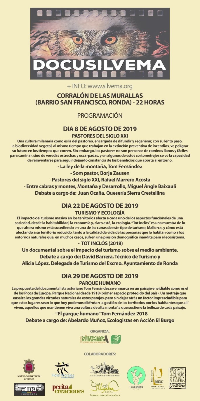 En DOCUSILVEMA vamos a abordar asuntos de actualidad y de gran interés para la conservación de nuestro medio ambiente, nuestra cultura y nuestra forma de vida. Por ello, además de la proyección de audiovisuales, también van a tener lugar debates en los que podrán participar quienes asistan.